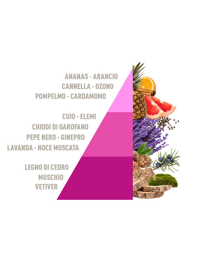 Aromatic Freshness ricorda una passeggiata nei campi di lavanda che riempiono l’aria con la loro fragranza avvolgente in una dolce estate provenzale. L’ananas e l’arancio sprigionano freschezza, mentre un delicato ricordo di pompelmo si mescola con le note calde di cannella e l’intensità dei sentori di cuoio e del pepe nero.